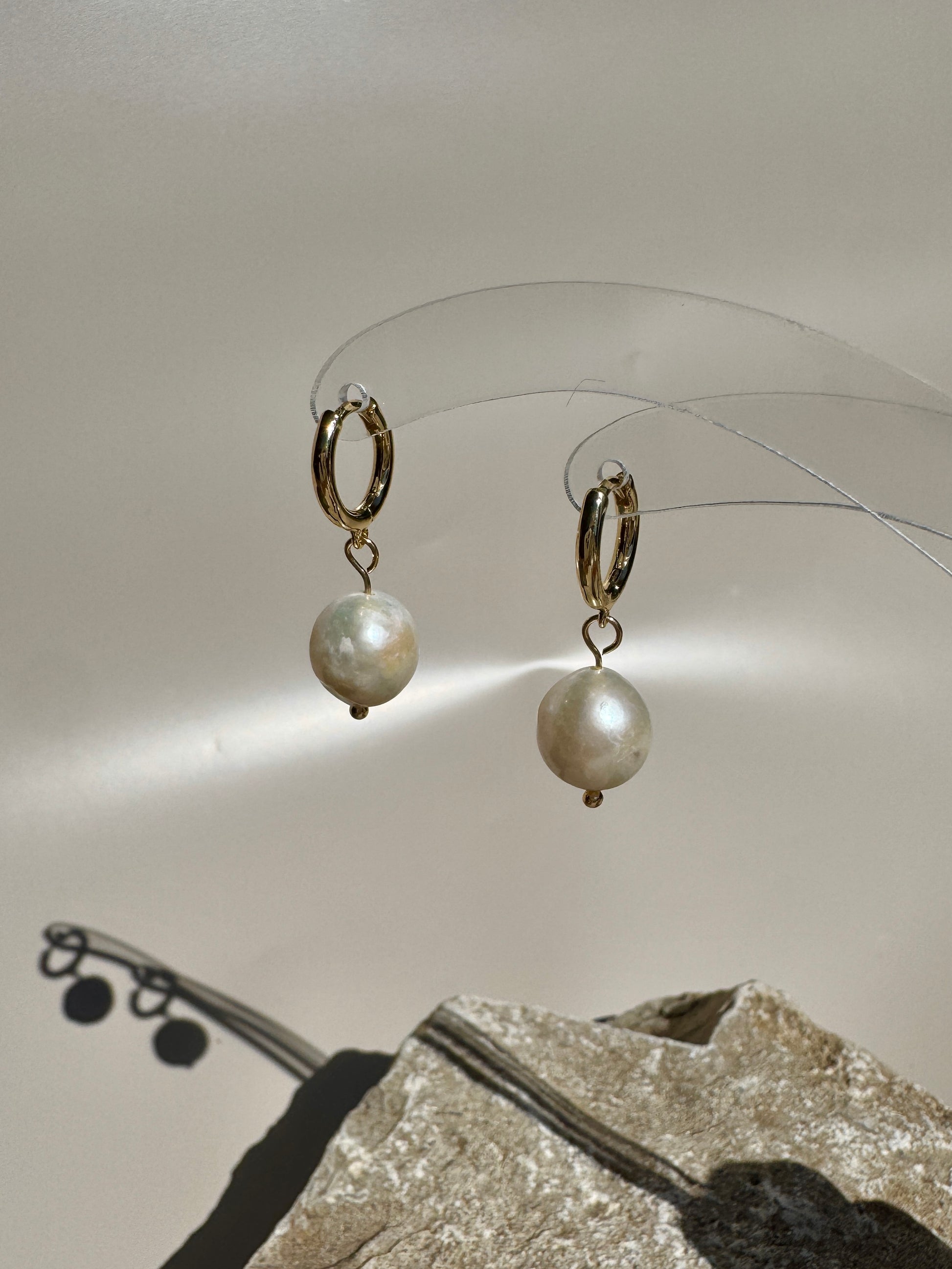 Elegant and timeless, these earrings pair smooth gold-plated hoops with luminous baroque freshwater pearls. The minimalist design highlights the pearl’s natural glow, creating a versatile accessory that effortlessly transitions from everyday wear to formal occasions. Lightweight and sophisticated, they add a touch of refined luxury to any style.