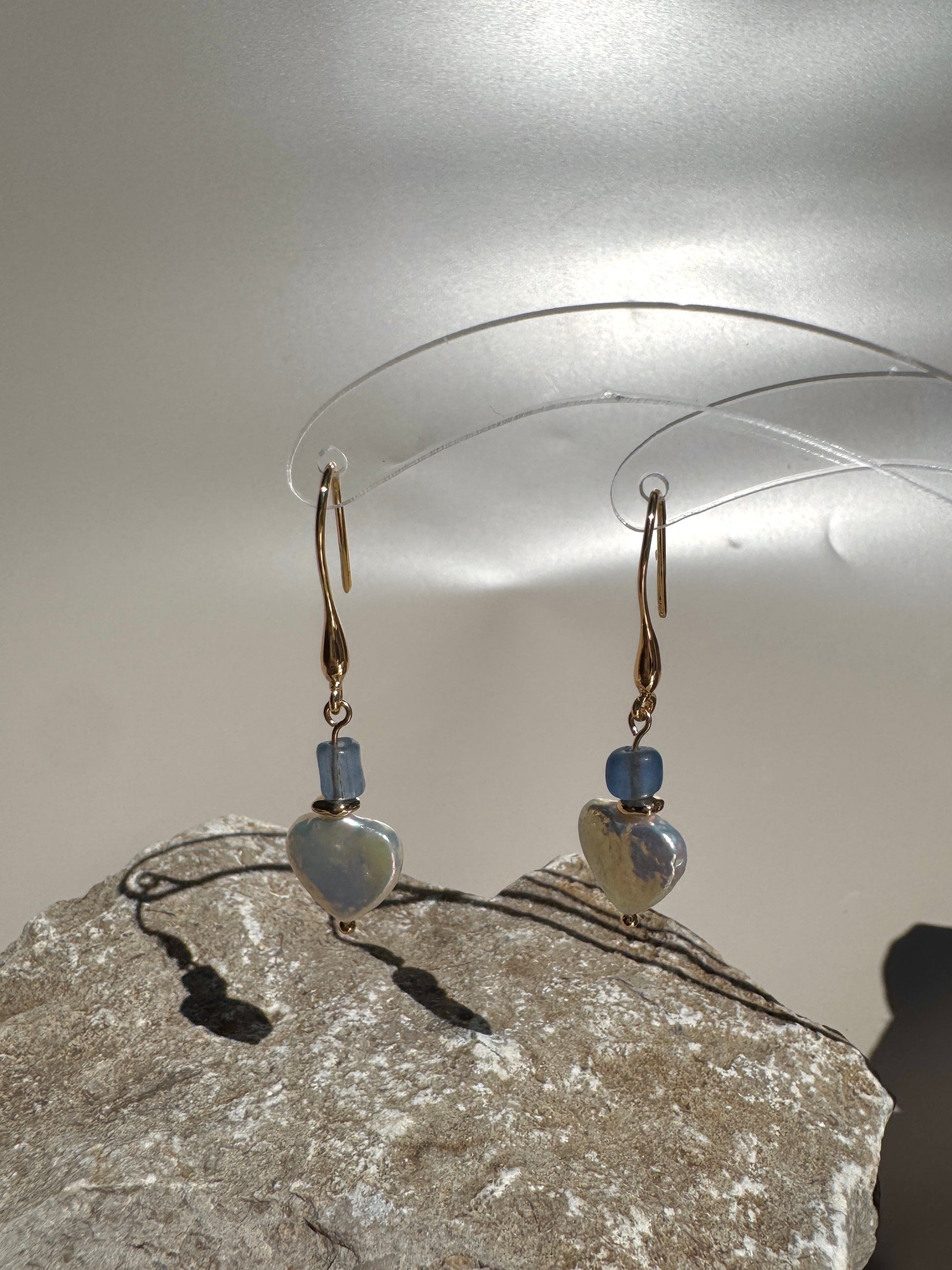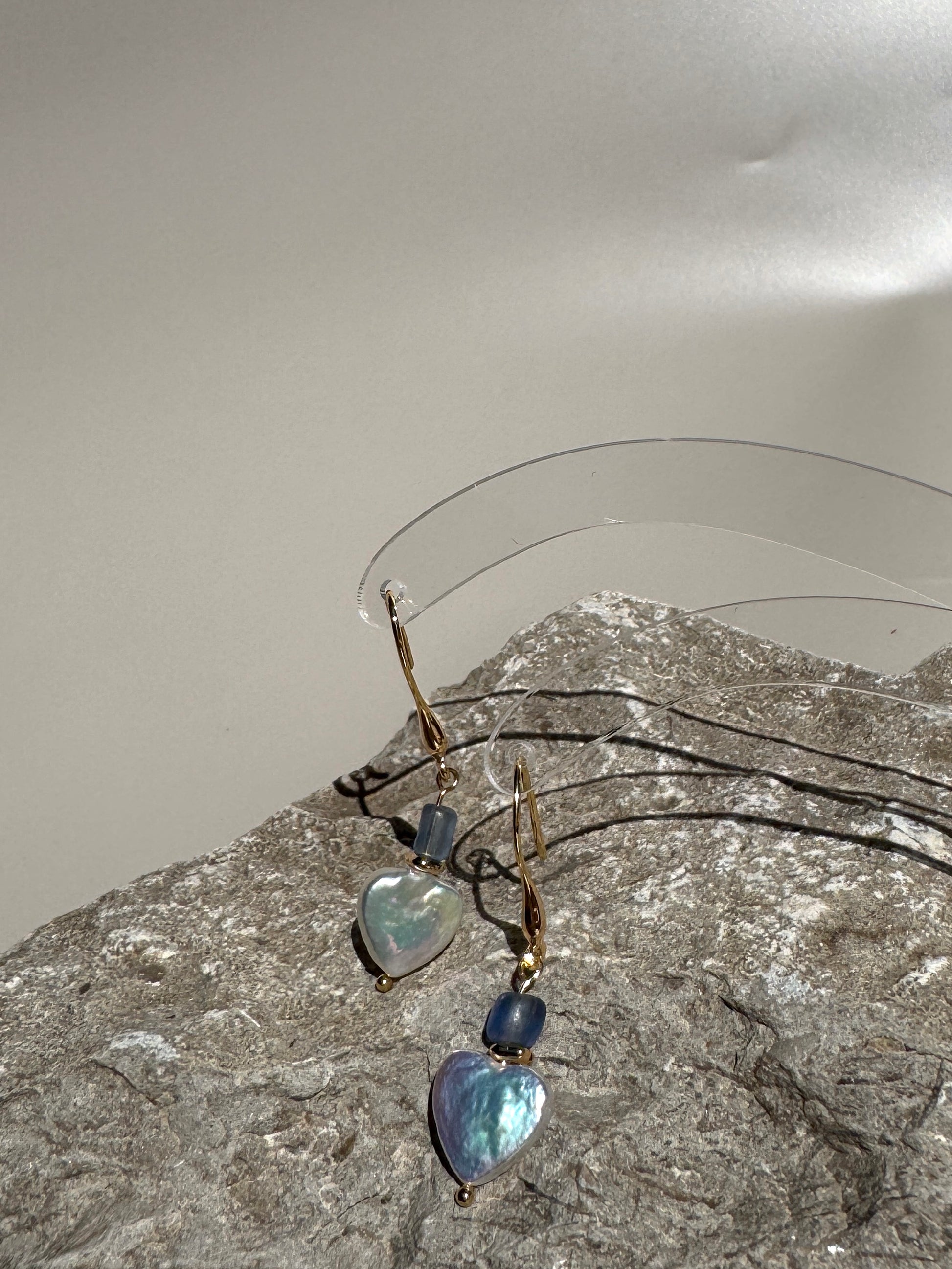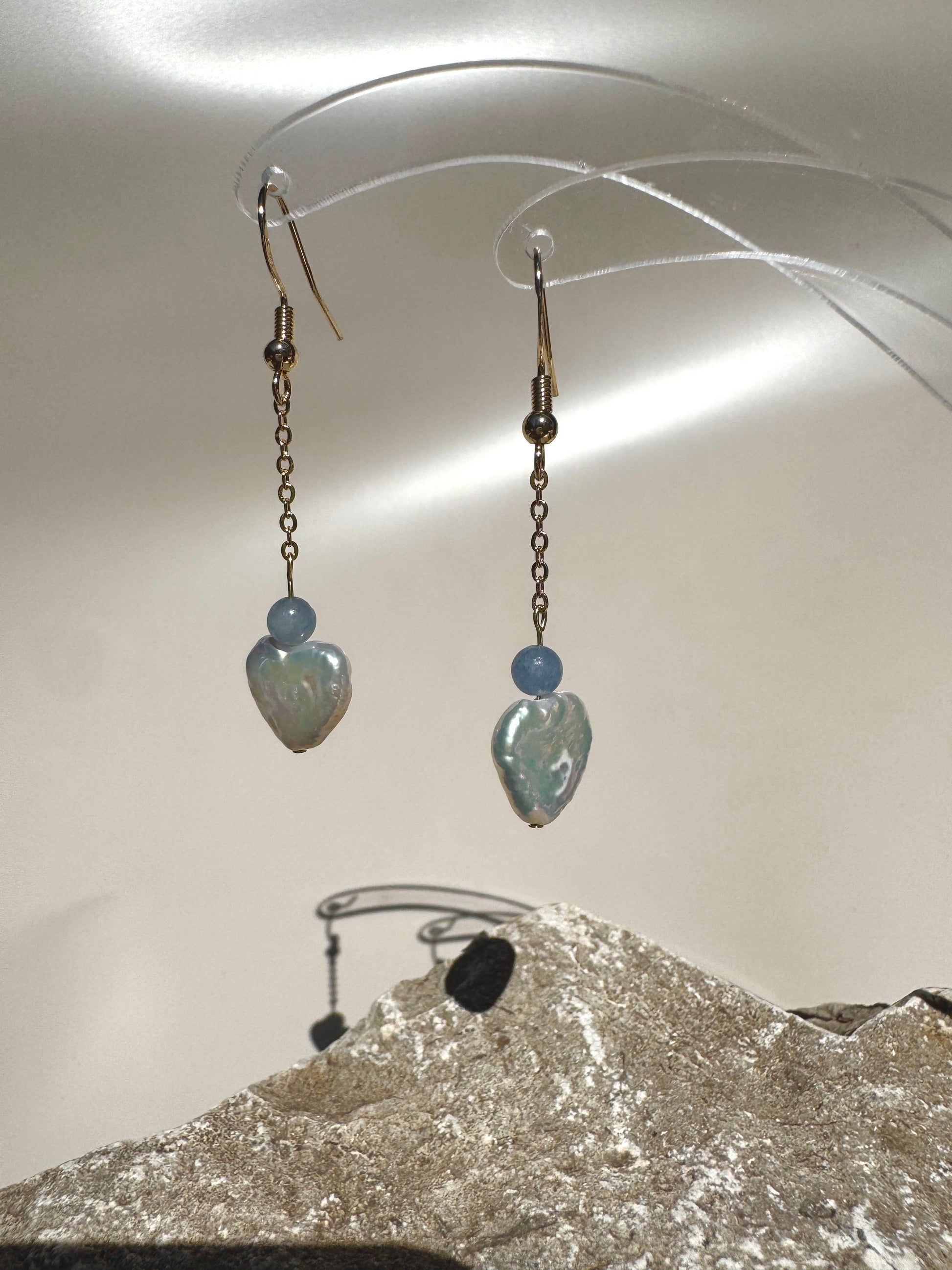 Handcrafted with luminous heart-shaped baroque freshwater pearls and accented by deep blue gemstones, these earrings capture a romantic, celestial elegance. The natural iridescence of the pearls reflects shades of the ocean and night sky, making each pair truly one of a kind. Available in both long drop and short drop styles, they offer versatile elegance — perfect for everyday wear or as a thoughtful gift that speaks from the heart.